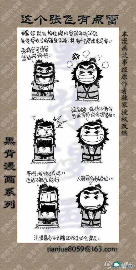 猛张飞看似粗犷,但心思也是非常细密的!刘关张好基友,腹黑的孔明,娘炮的子龙,龌龊的魏延,原来三国也是可以如此可爱的。
